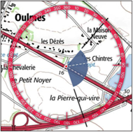 La carte, présentée ci-contre en grand, présente l'ensemble des contraintes liées au site.